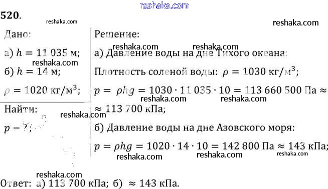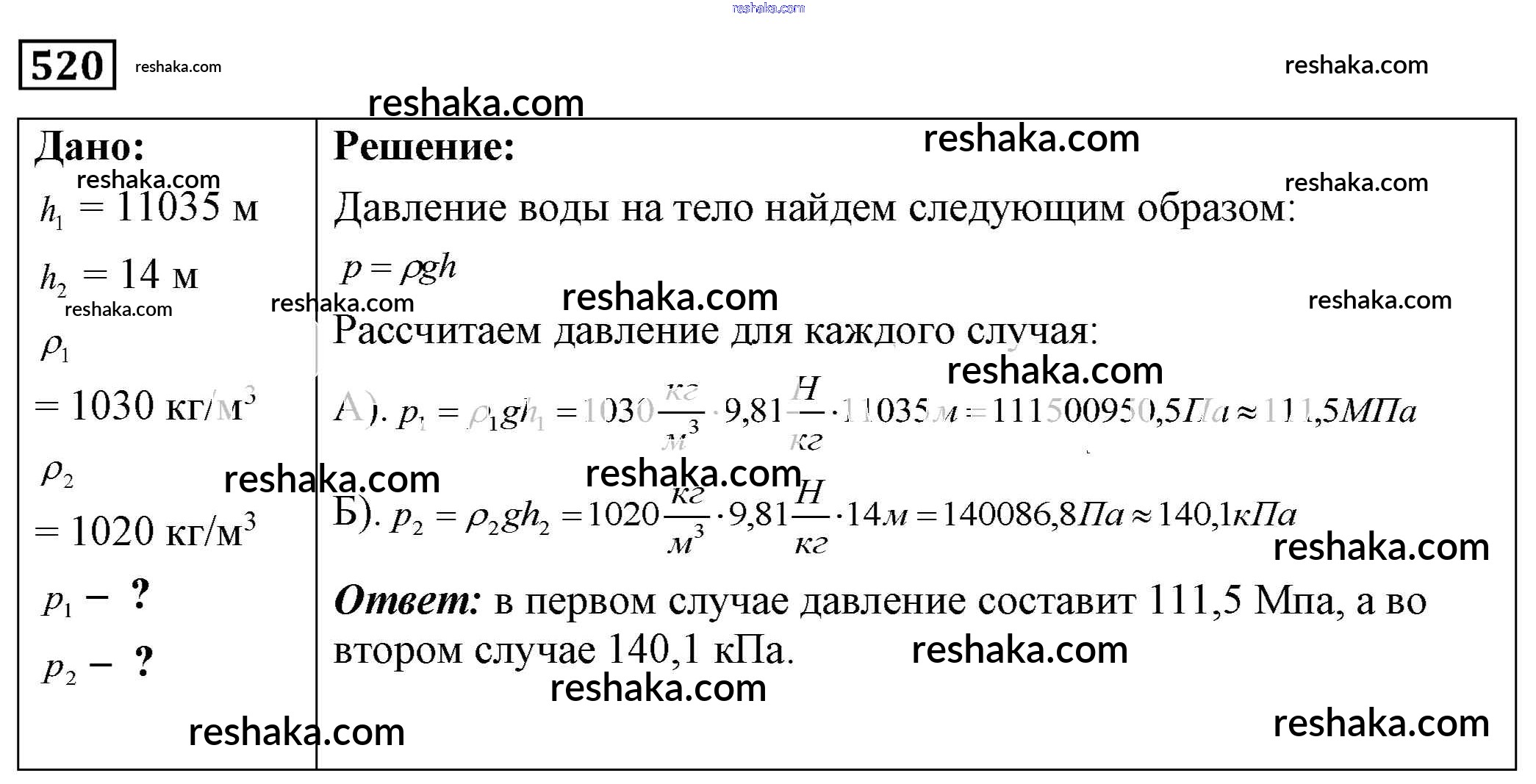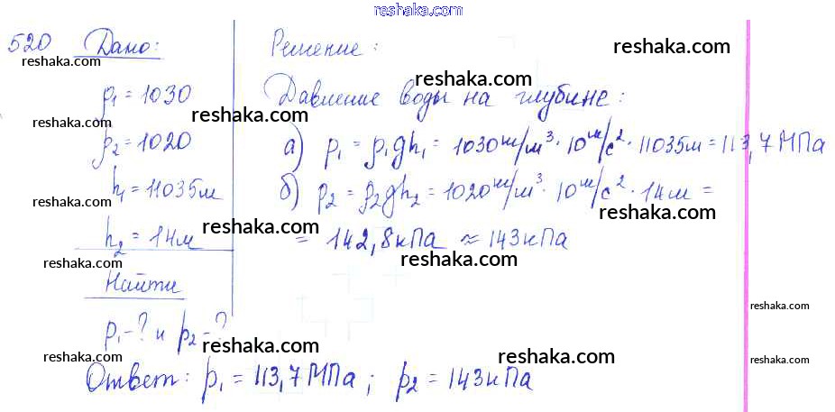 Решака - онлайн ответы Физика Лукашик, Иванова за 7-9 класс Сборник задач ФГОС 2011 - 520
