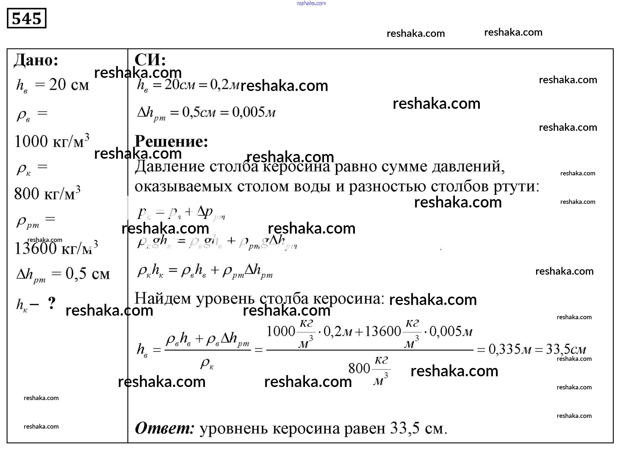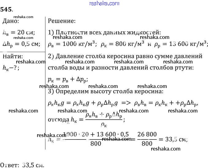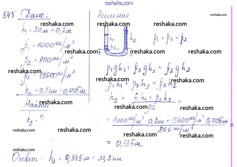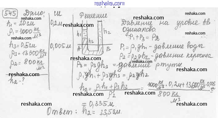 Решака - онлайн ответы Физика Лукашик, Иванова за 7-9 класс Сборник задач ФГОС 2011 - 545