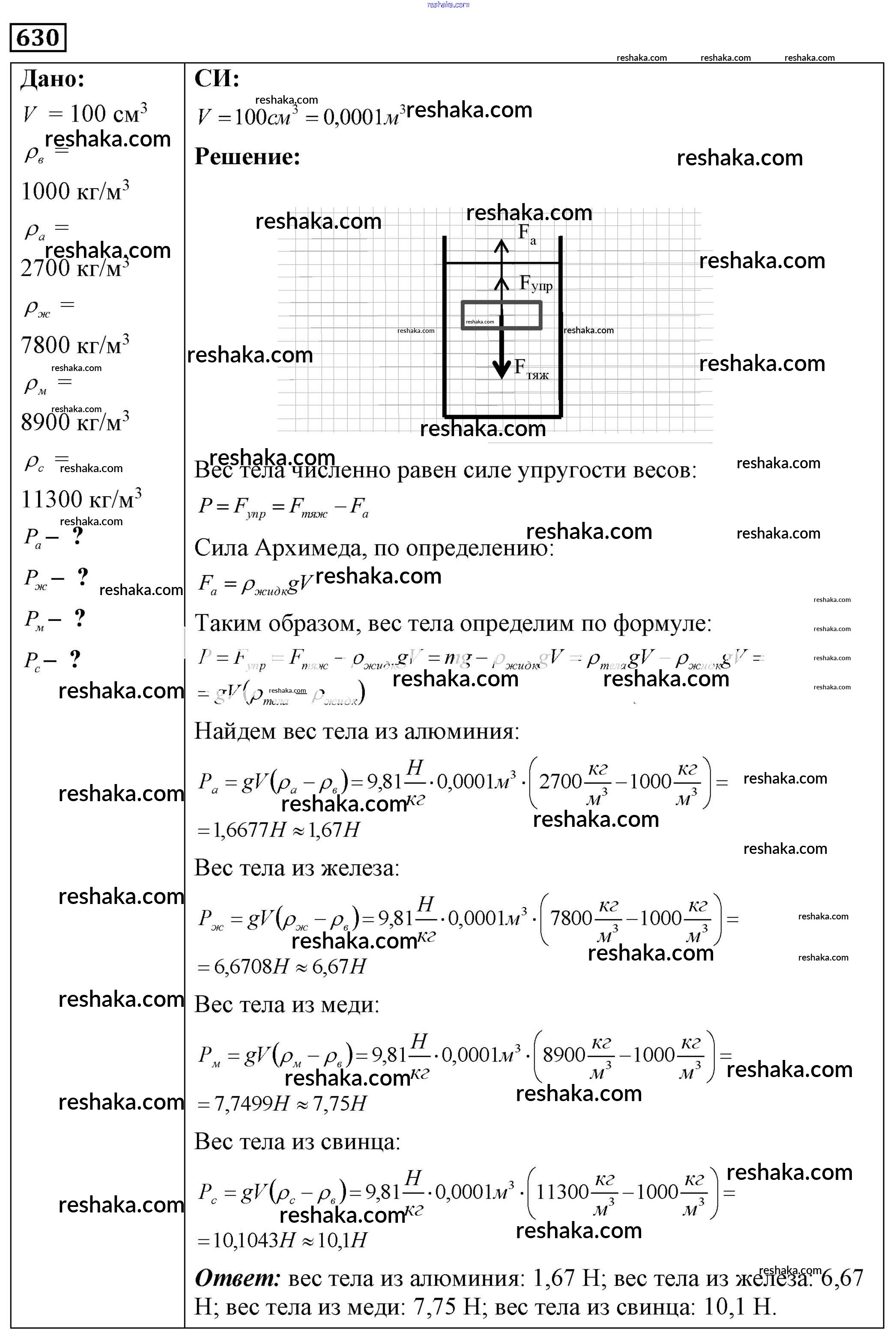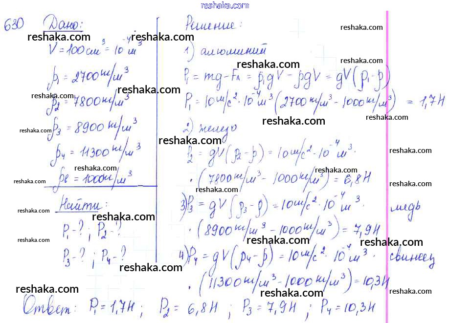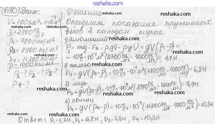 Решака - онлайн ответы Физика Лукашик, Иванова за 7-9 класс Сборник задач ФГОС 2011 - 630