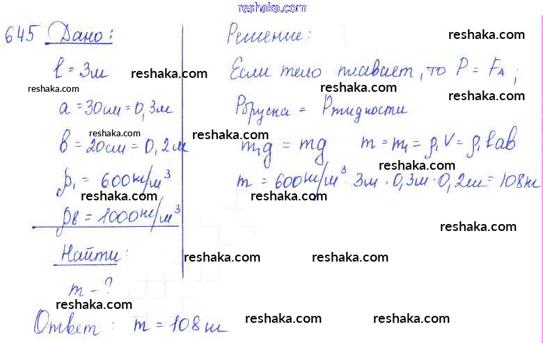 Решака - онлайн ответы Физика Лукашик, Иванова за 7-9 класс Сборник задач ФГОС 2011 - 645