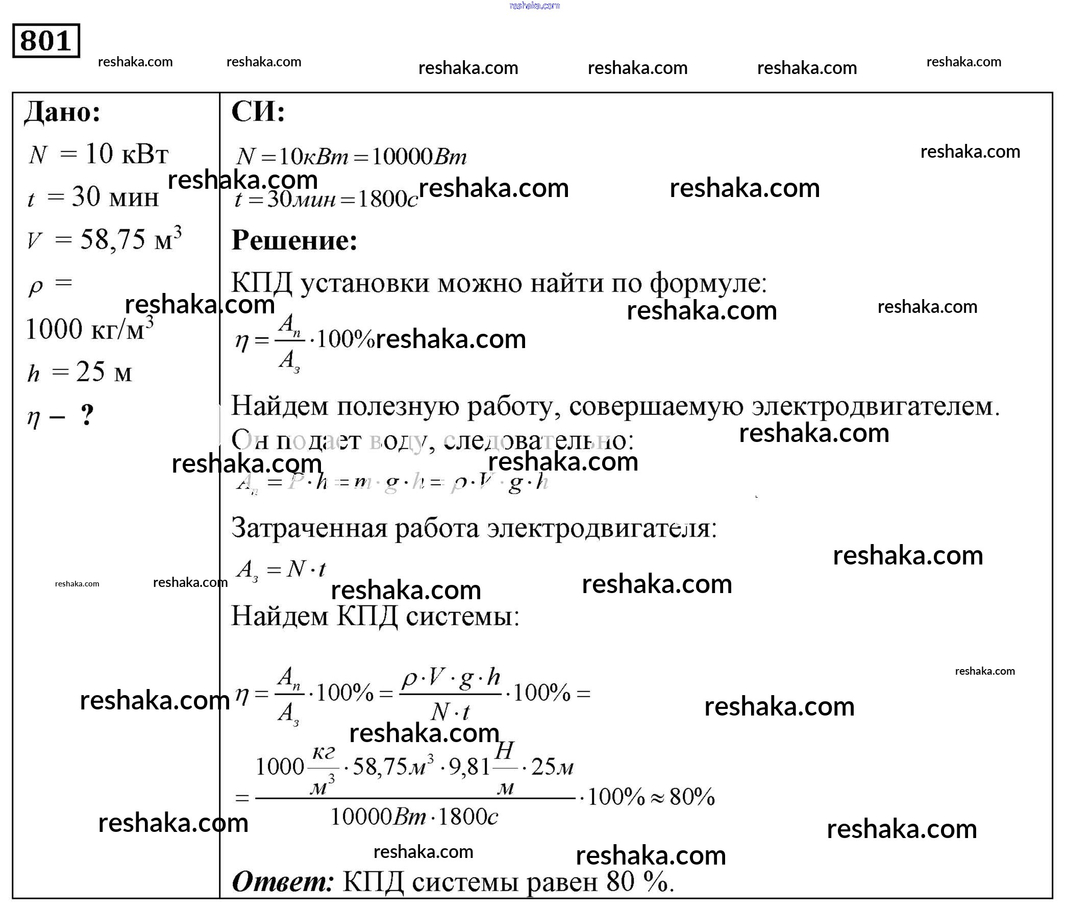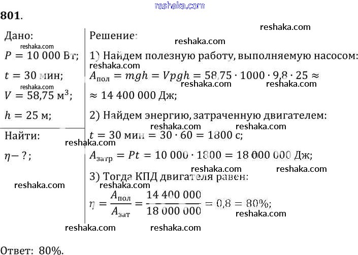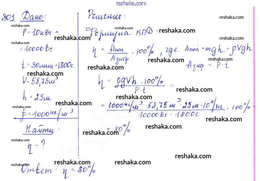 Решака - онлайн ответы Физика Лукашик, Иванова за 7-9 класс Сборник задач ФГОС 2011 - 801