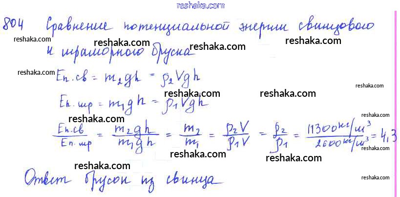 Решака - онлайн ответы Физика Лукашик, Иванова за 7-9 класс Сборник задач ФГОС 2011 - 804