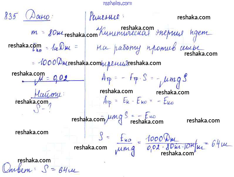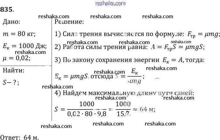 Решака - онлайн ответы Физика Лукашик, Иванова за 7-9 класс Сборник задач ФГОС 2011 - 835