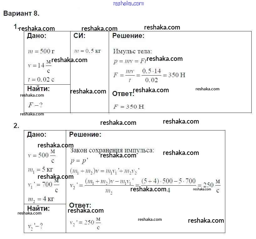 Решака - онлайн ответы Физика Марон за 9 класс Дидактические материалы ФГОС 2019 - 8