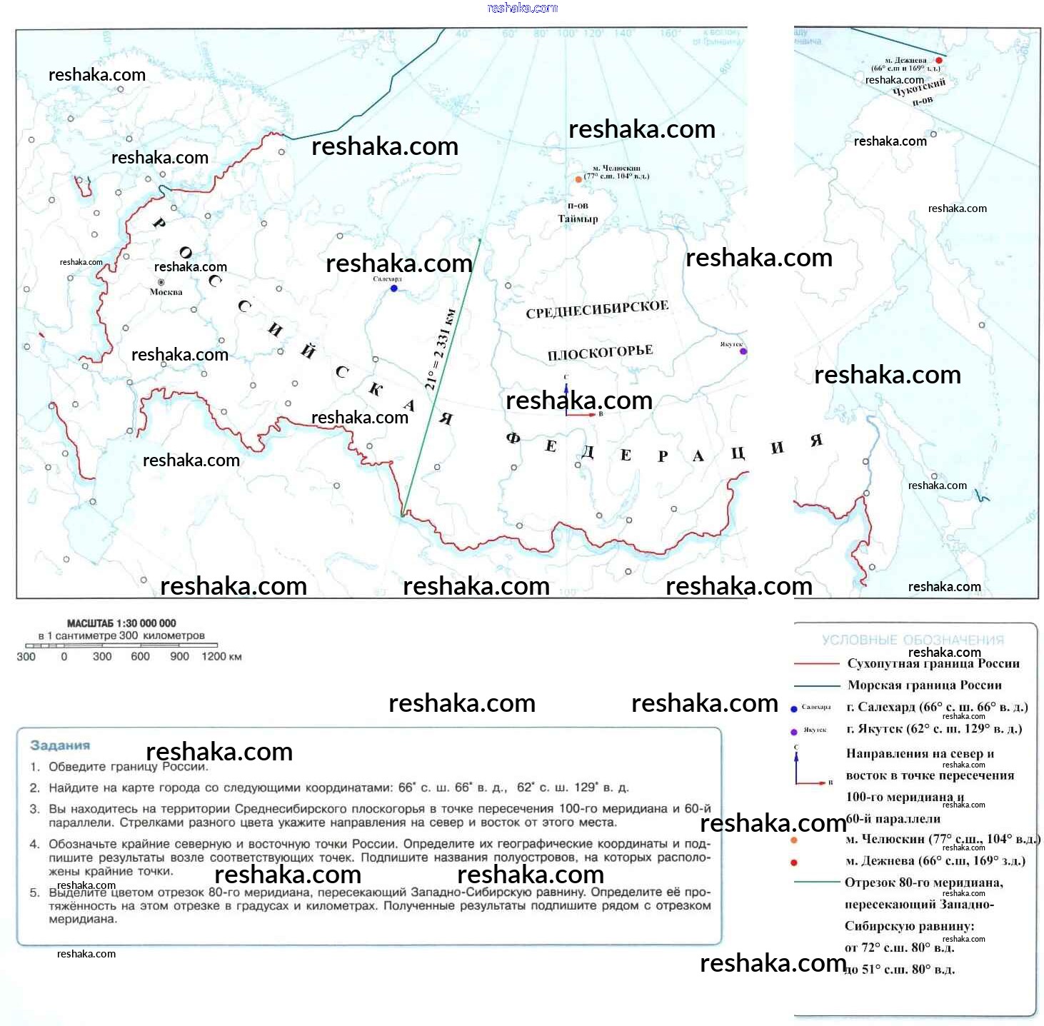 Решака - онлайн ответы География Петрова, Кучеренко за 5 класс Контурные карты 2021 - Россия. Физическая карта.