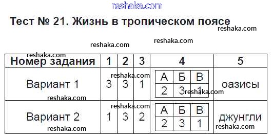 Решака - онлайн ответы География Пятунин, Пятунина за 5 класс Тесты ФГОС 2017 - Тест 21