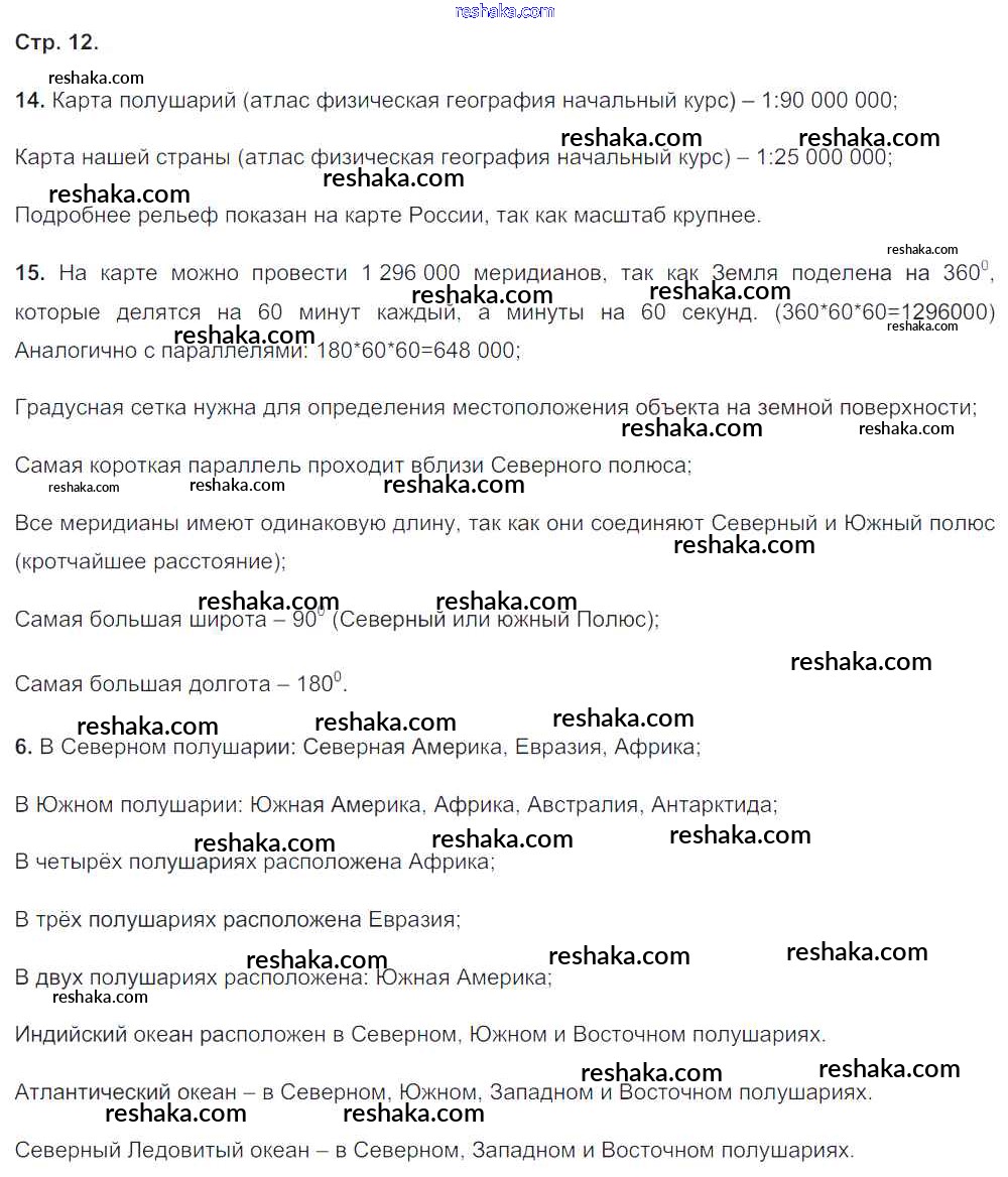 Решака - онлайн ответы География Баринова, Суслов за 6 класс Рабочая тетрадь с контурными картами ФГОС 2010 - 12