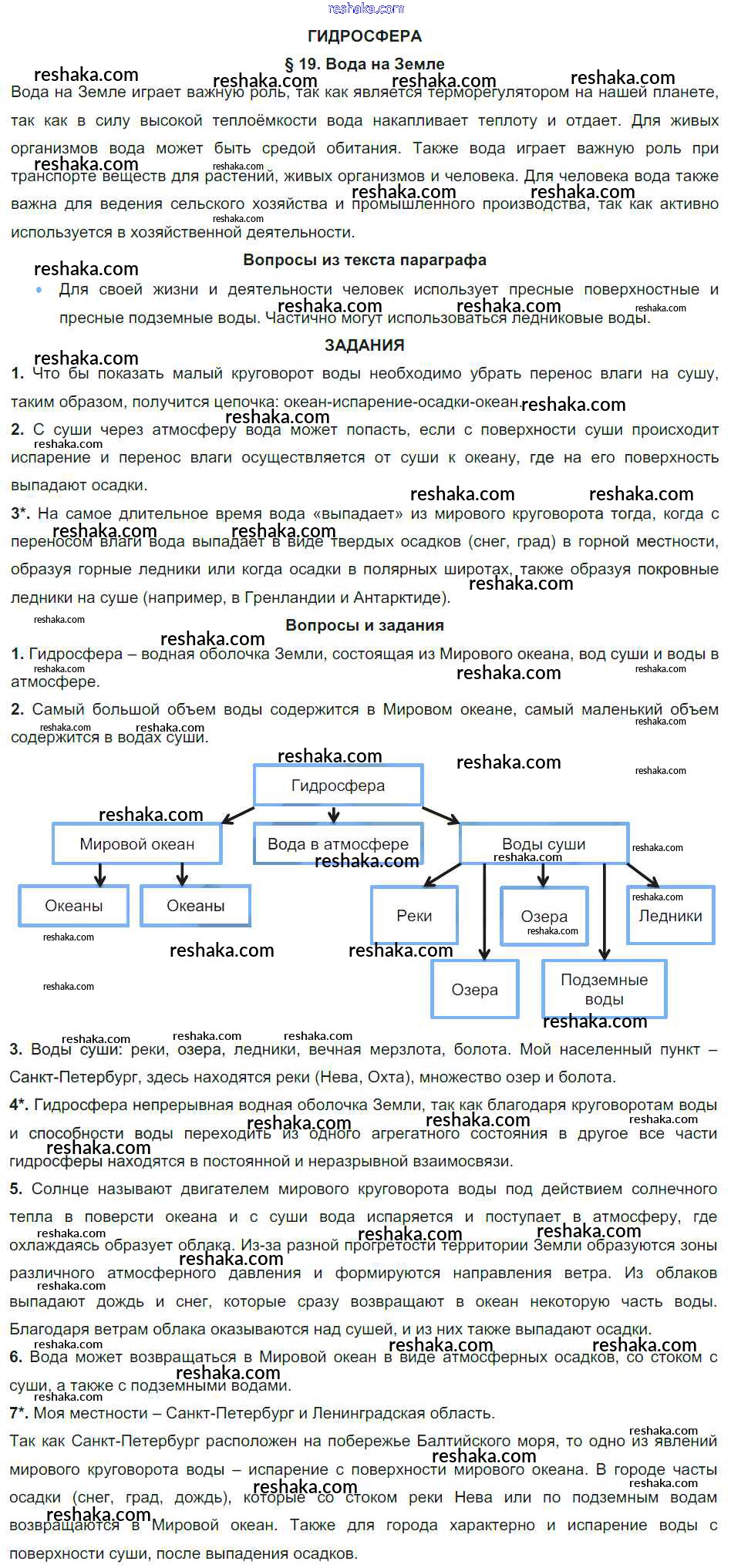 Решака - онлайн ответы География Герасимова, Неклюкова за 6 класс Учебник ФГОС 2019 - §19. Вода на Земле