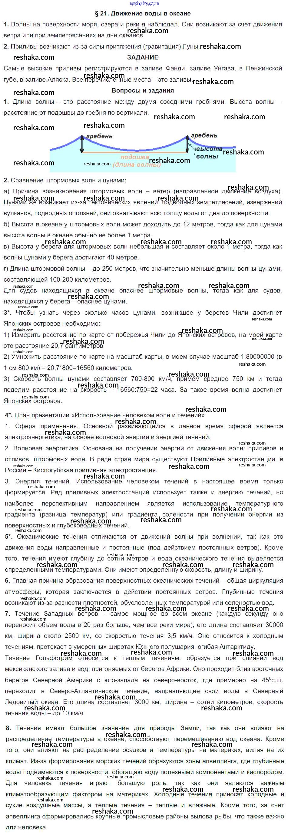 Решака - онлайн ответы География Герасимова, Неклюкова за 6 класс Учебник ФГОС 2019 - §21. Движение воды в океане