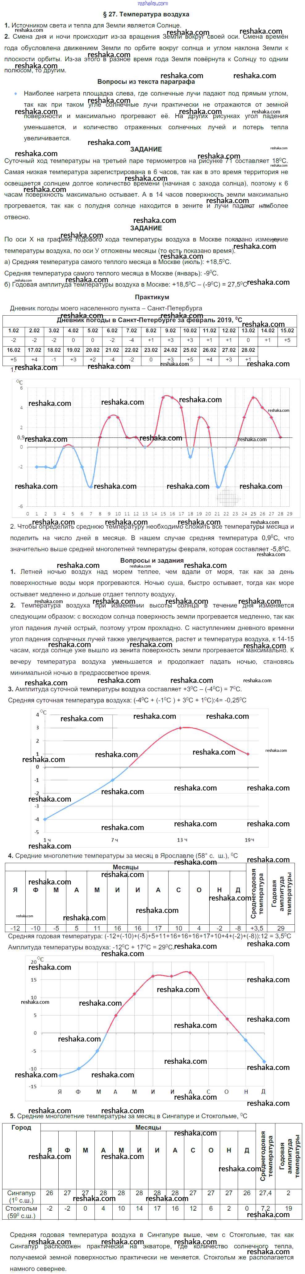 Решака - онлайн ответы География Герасимова, Неклюкова за 6 класс Учебник ФГОС 2019 - §27. Температура воздуха