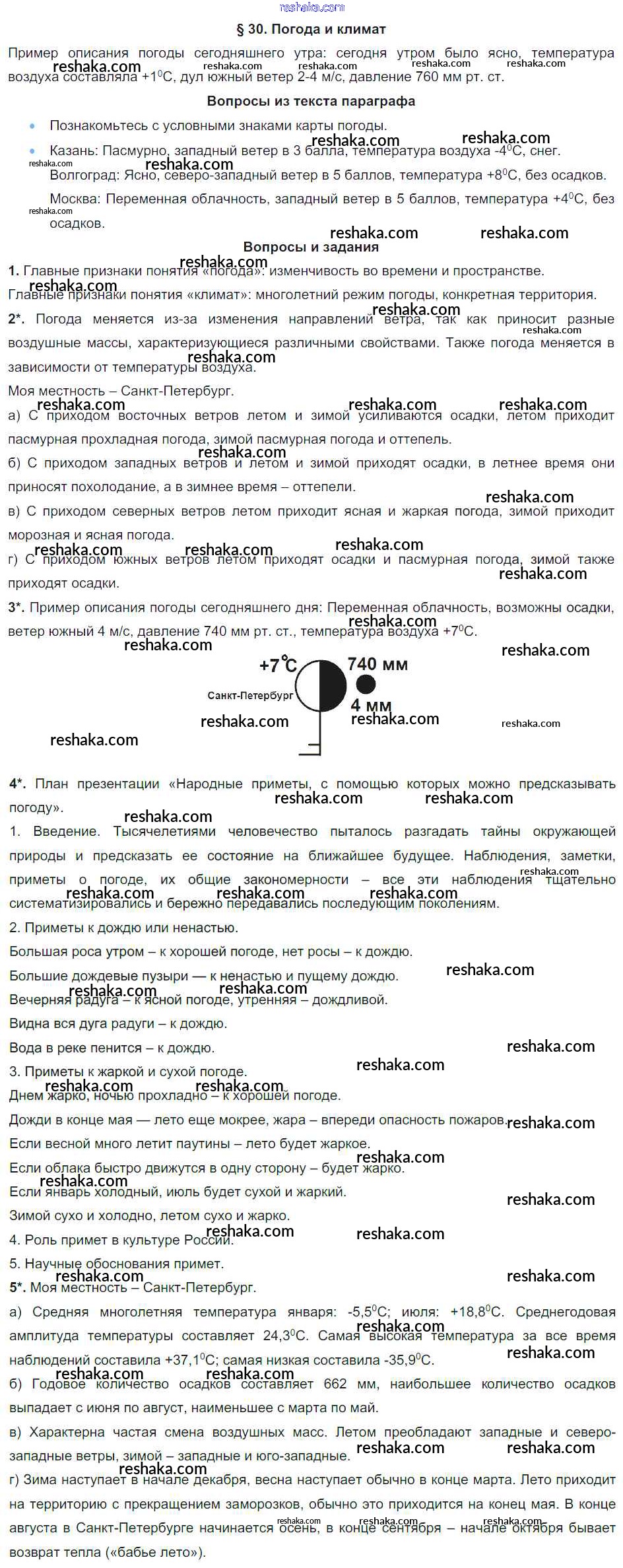 Решака - онлайн ответы География Герасимова, Неклюкова за 6 класс Учебник ФГОС 2019 - §30. Погода и климат