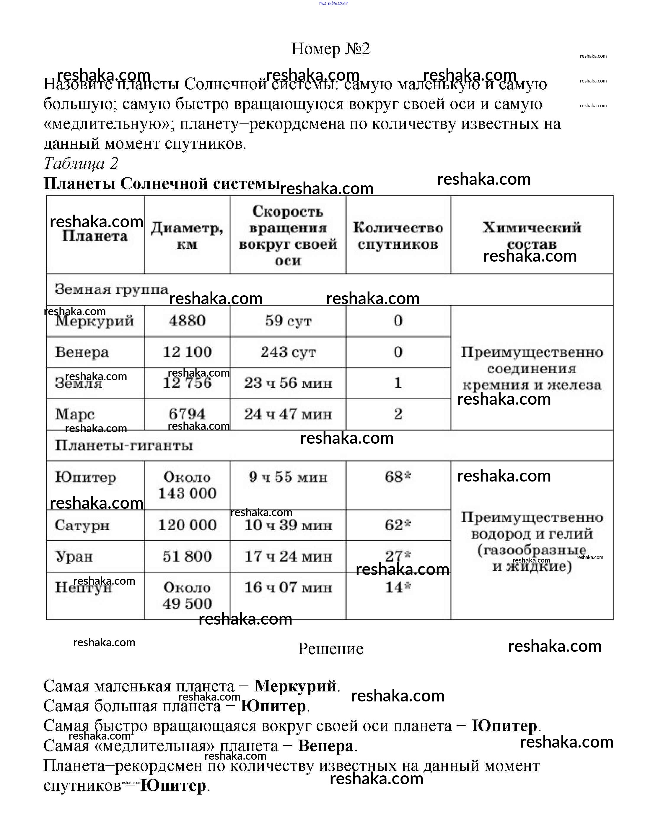 Представляем вам сборники по Географии, с готовыми ответами к Учебнику Климанова школьной программы для учеников пятый-шестой класса. Это не просто гдз с ответом, а с подсказками, как верно решить Таблица 2 §3. Солнечная система 2. Проверяй домашку с умом и получай высший балл!
