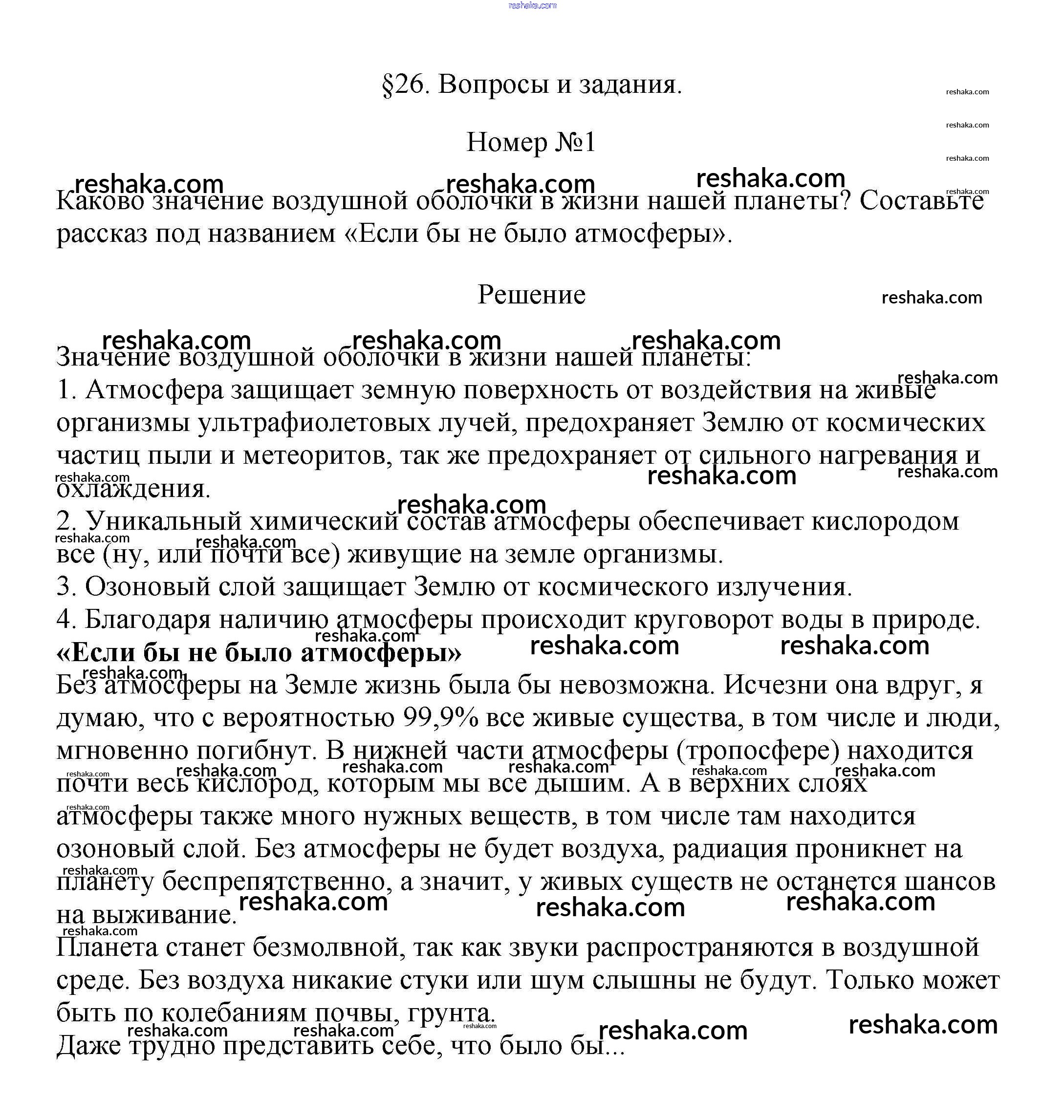 Представляем вам сборники по Географии, с готовыми ответами к Учебнику Климанова школьной программы для учеников пятый-шестой класса. Это не просто гдз с ответом, а с подсказками, как верно решить Вопросы и задания §26. Атмосфера Земли и ее значение для человека 1. Проверяй домашку с умом и получай высший балл!