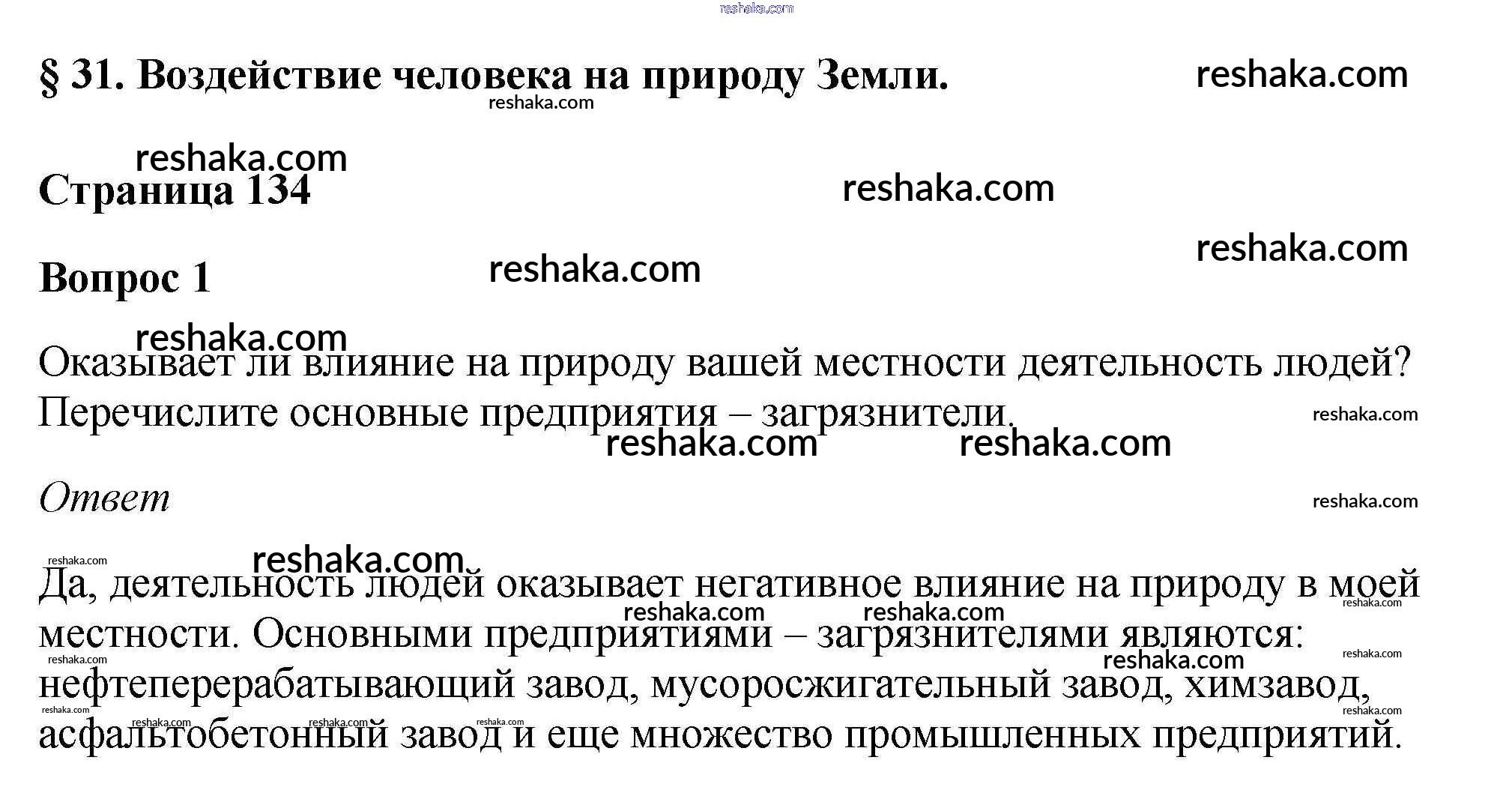 Представляем вам сборники по Географии, с готовыми ответами к Учебнику Климанова школьной программы для учеников пятый-шестой класса. Это не просто гдз с ответом, а с подсказками, как верно решить Вопросы и задания §31. Воздействие человека на природу Земли 1. Проверяй домашку с умом и получай высший балл!