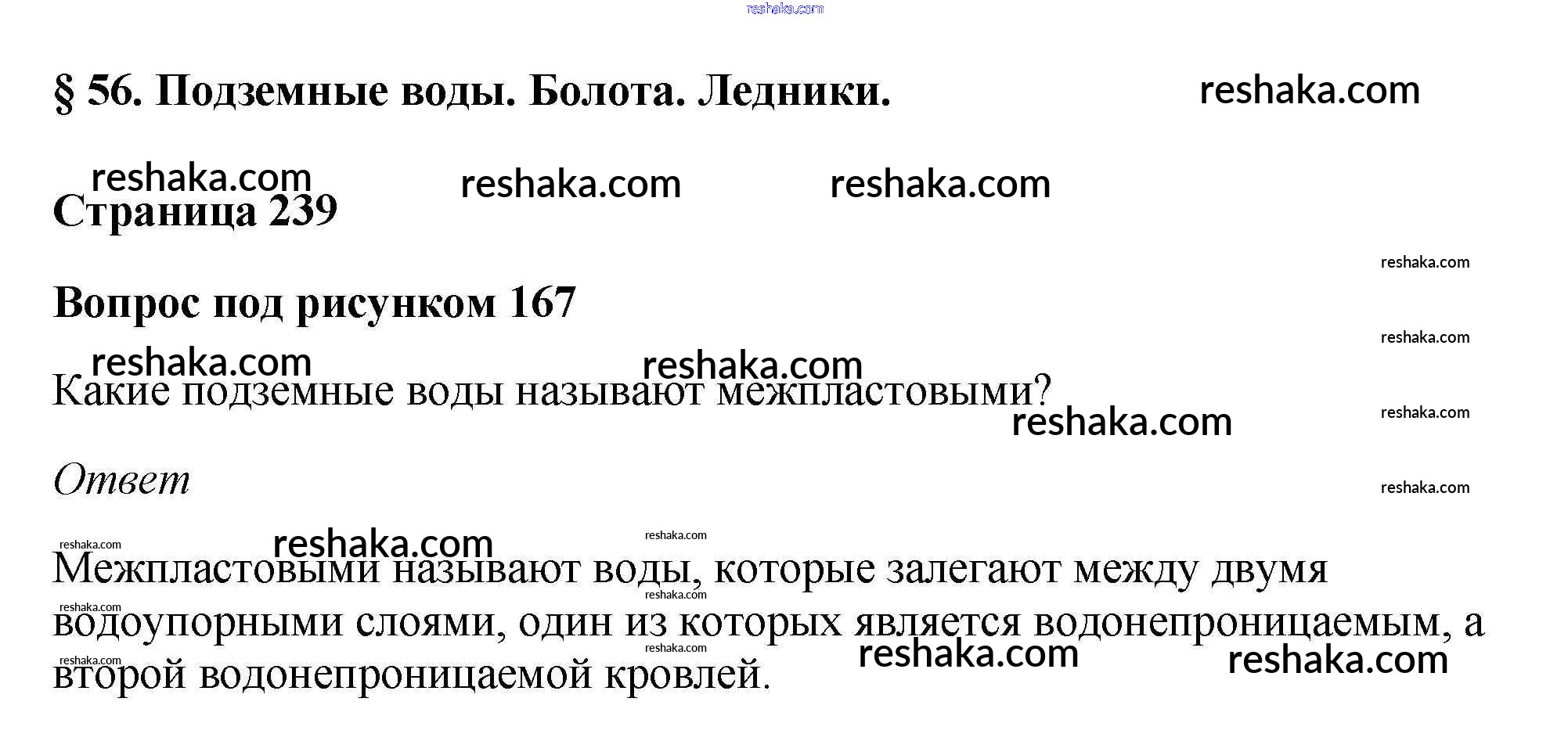 Представляем вам сборники по Географии, с готовыми ответами к Учебнику Климанова школьной программы для учеников пятый-шестой класса. Это не просто гдз с ответом, а с подсказками, как верно решить Вопросы к рисункам §56. Подземные воды. Болота. Ледники рис. 167. Проверяй домашку с умом и получай высший балл!