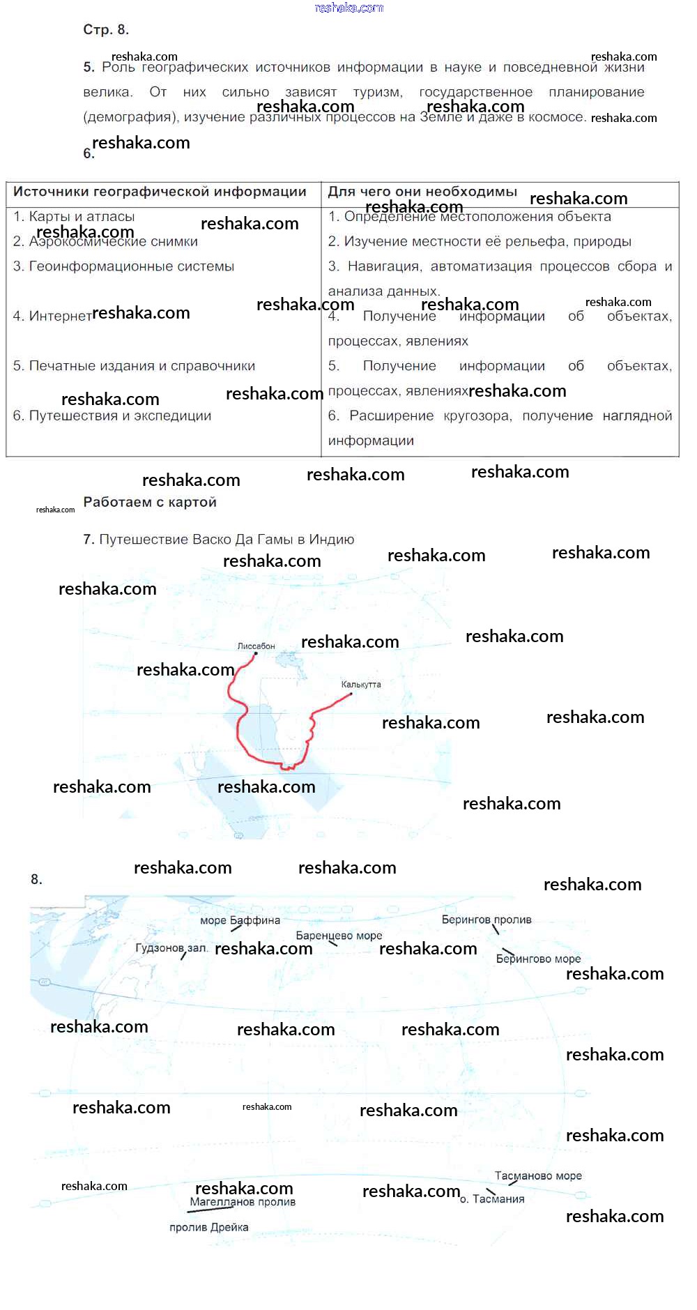 Решака - онлайн ответы География Николина за 5-6 класс Мой тренажёр ФГОС 2014 - 8