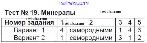 Решака - онлайн ответы География Пятунина, Пятунин за 6 класс Тесты ФГОС 2017 - Тест-19. Минералы