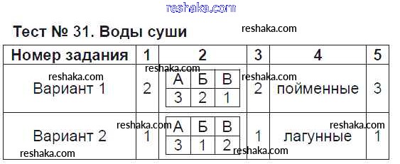 Решака - онлайн ответы География Пятунина, Пятунин за 6 класс Тесты ФГОС 2017 - Тест-31. Воды суши