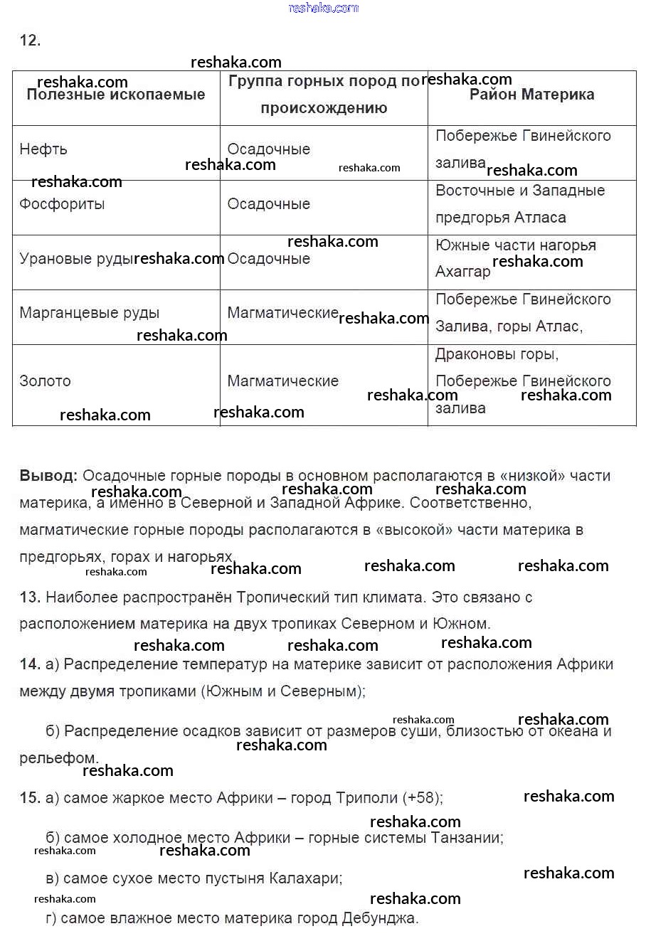 Решака - онлайн ответы География Душина за 7 класс Рабочая тетрадь ФГОС 2016 - 63