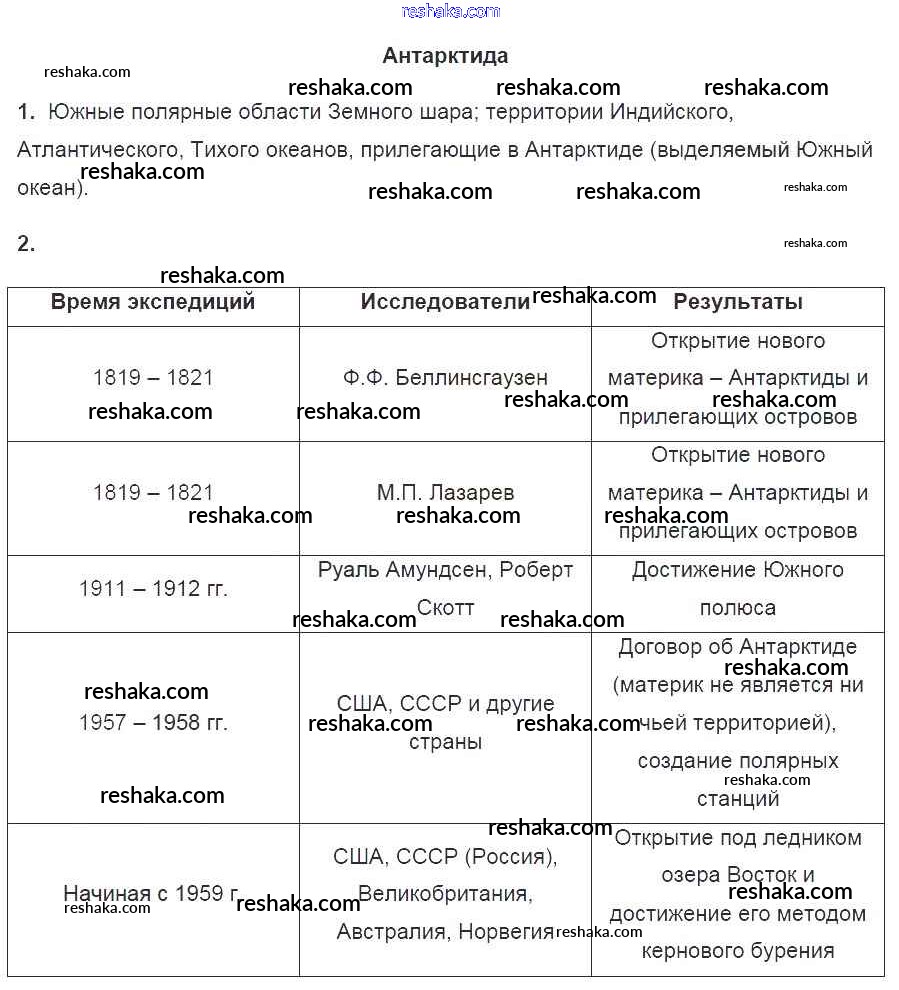Решака - онлайн ответы География Душина за 7 класс Рабочая тетрадь ФГОС 2016 - 95