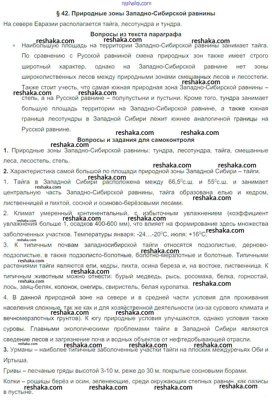 Решака - онлайн ответы География Баринова за 8 класс Учебник ФГОС 2019 - 42