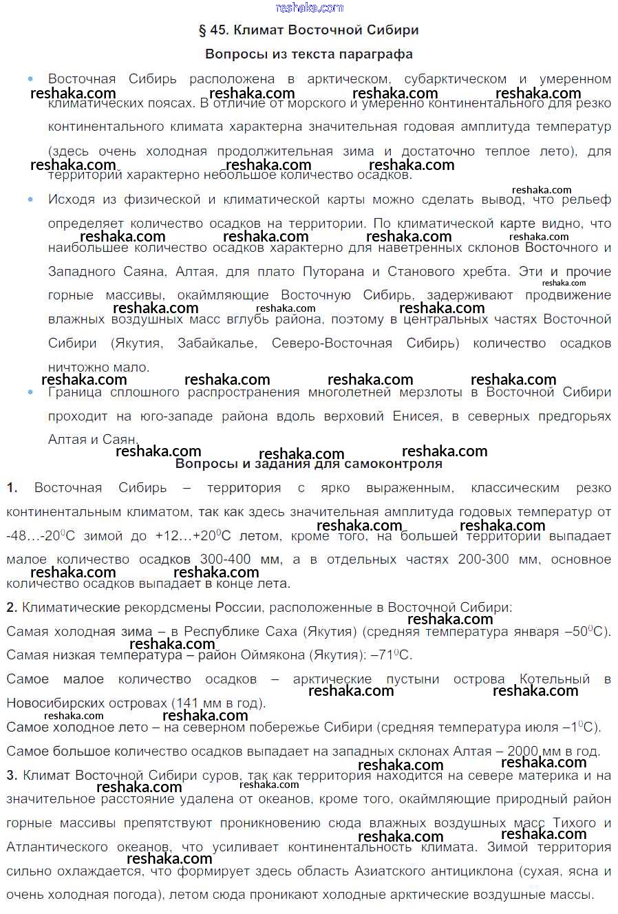 Решака - онлайн ответы География Баринова за 8 класс Учебник ФГОС 2019 - 45