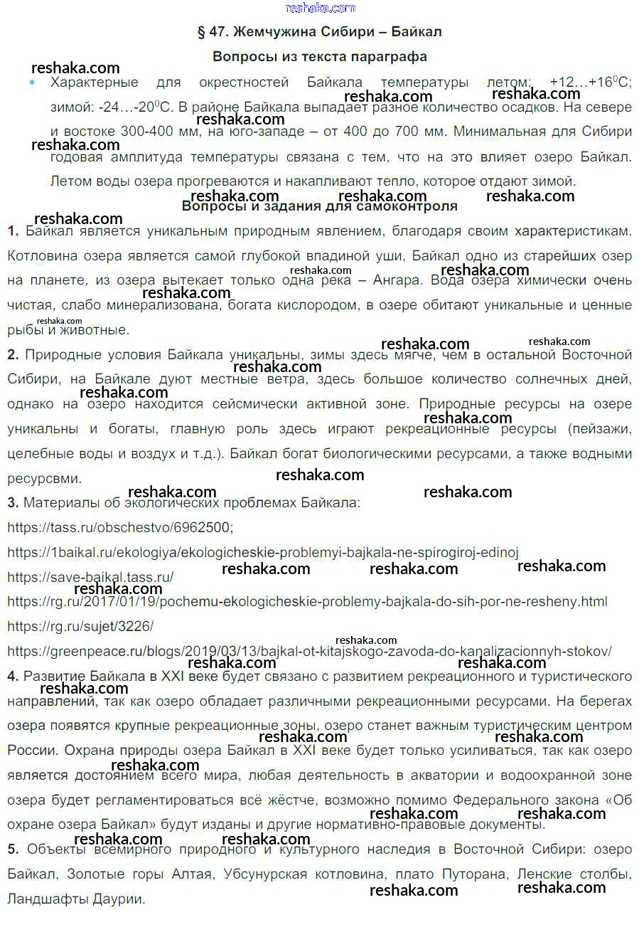 Решака - онлайн ответы География Баринова за 8 класс Учебник ФГОС 2019 - 47