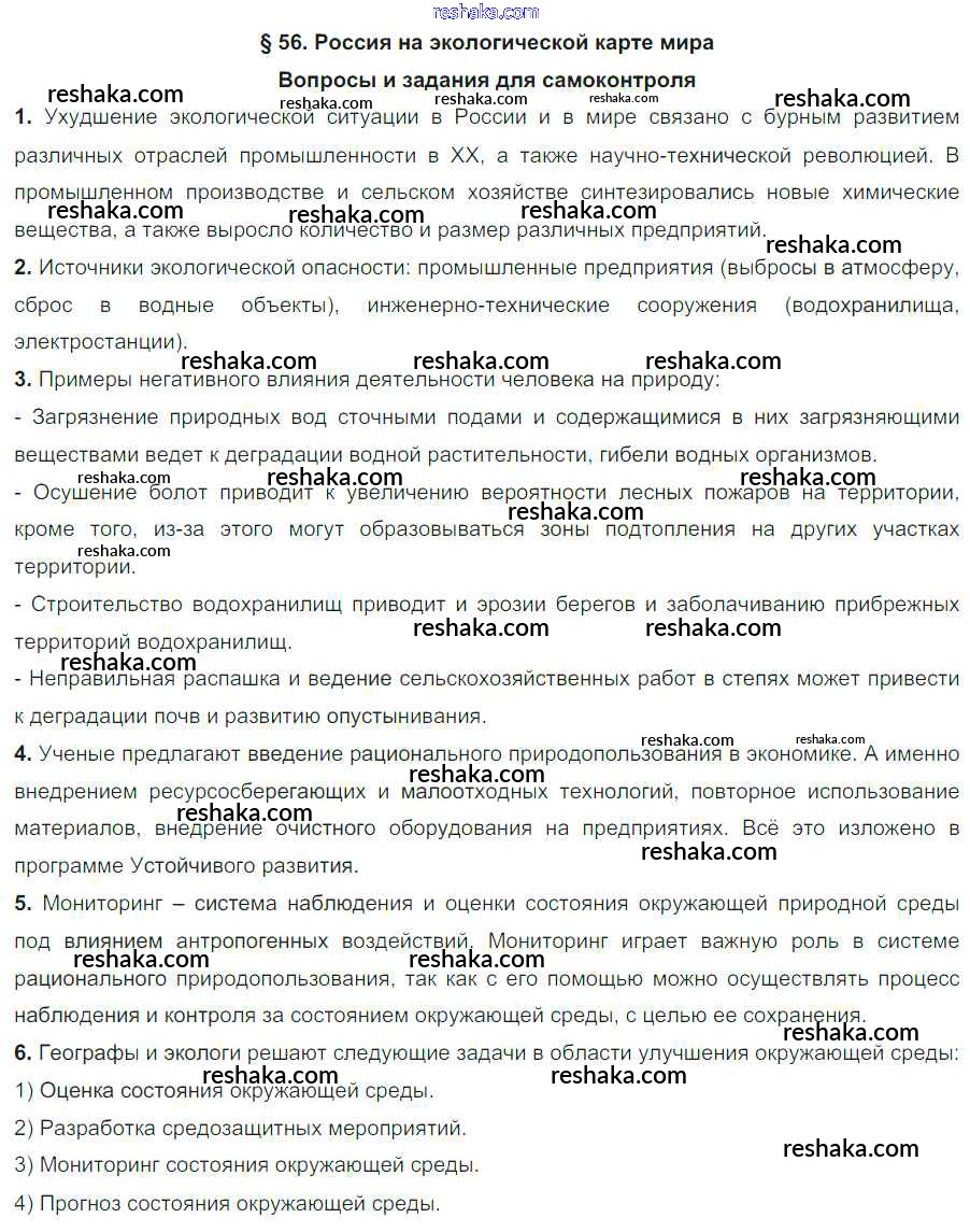 Решака - онлайн ответы География Баринова за 8 класс Учебник ФГОС 2019 - 56