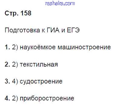 Представляем вам сборники по Географии, с готовыми ответами к Рабочей тетради Баринова школьной программы для учеников девятый класса. Это не просто гдз с ответом, а с подсказками, как верно решить Страницы 158. Проверяй домашку с умом и получай высший балл!