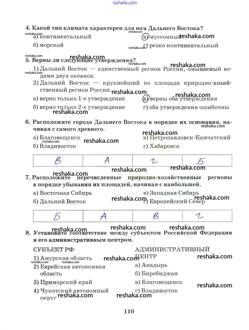 Решака - онлайн ответы География Домогацких за 9 класс Рабочая тетрадь ФГОС 2018 - 110