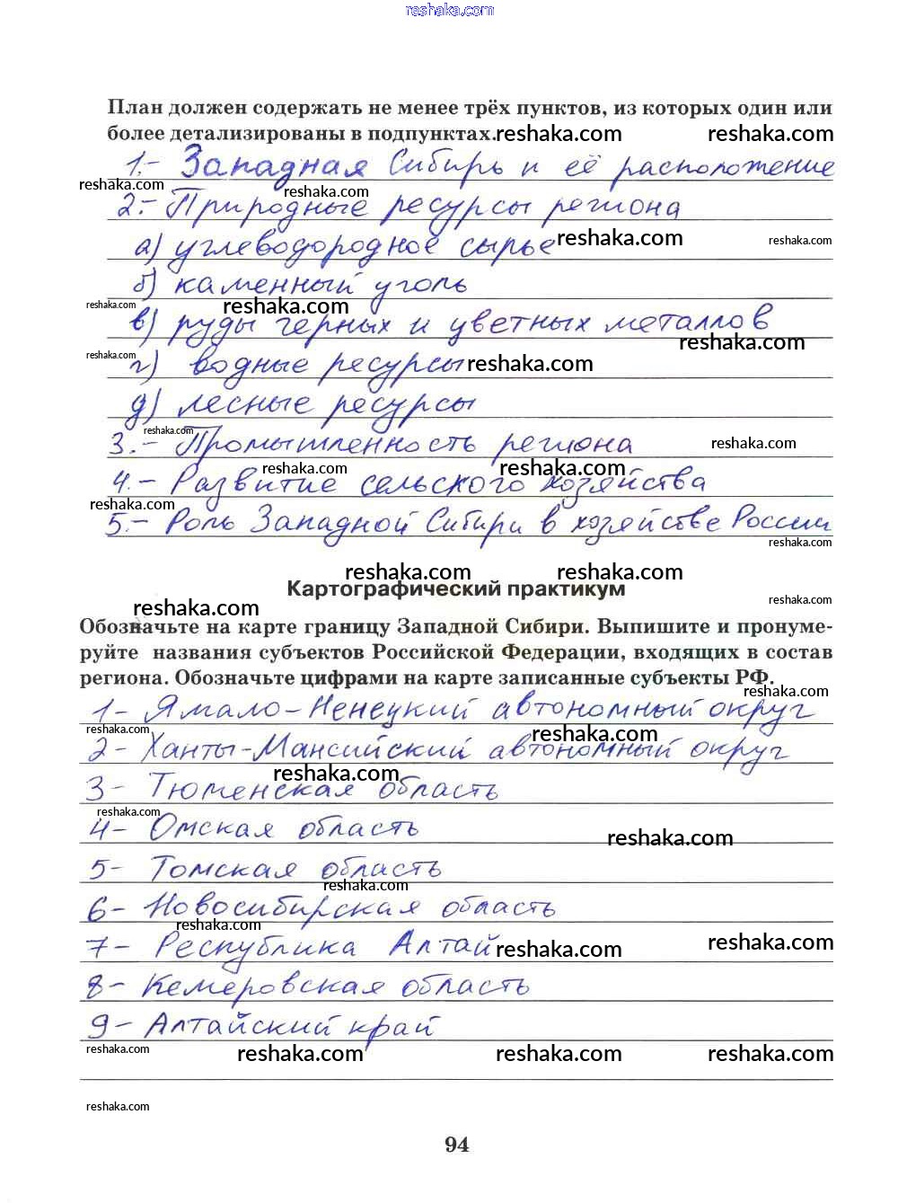 Решака - онлайн ответы География Домогацких за 9 класс Рабочая тетрадь ФГОС 2018 - 94