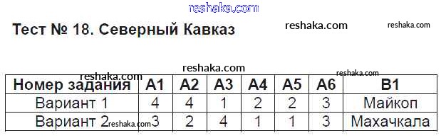 Решака - онлайн ответы География Жижина за 9 класс Контрольно-измерительные материалы (КИМ) ФГОС 2017 - Тест №18. Северный Кавказ