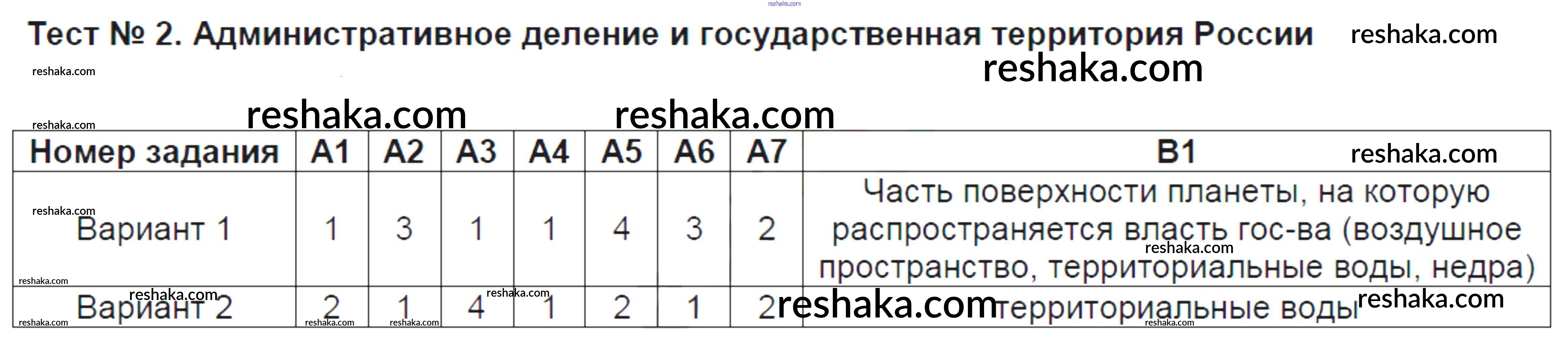 Решака - онлайн ответы География Жижина за 9 класс Контрольно-измерительные материалы (КИМ) ФГОС 2017 - Тест №2. Административное деление и государственная территория России