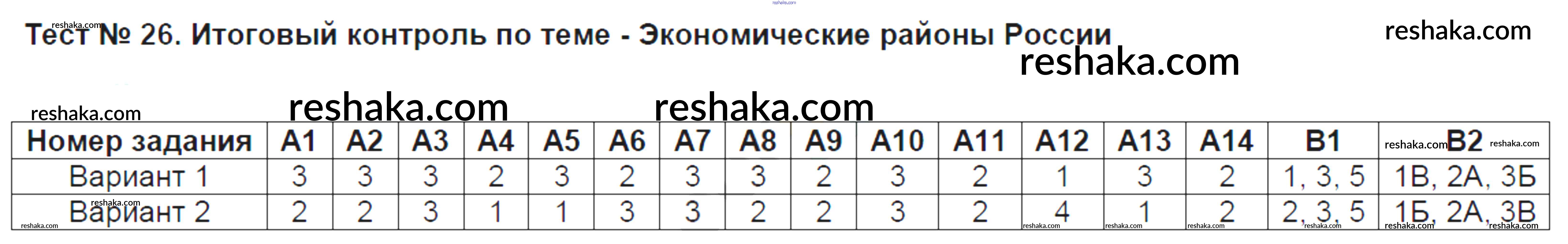 Решака - онлайн ответы География Жижина за 9 класс Контрольно-измерительные материалы (КИМ) ФГОС 2017 - Тест №26. Итоговый контроль по теме - Экономические районы России