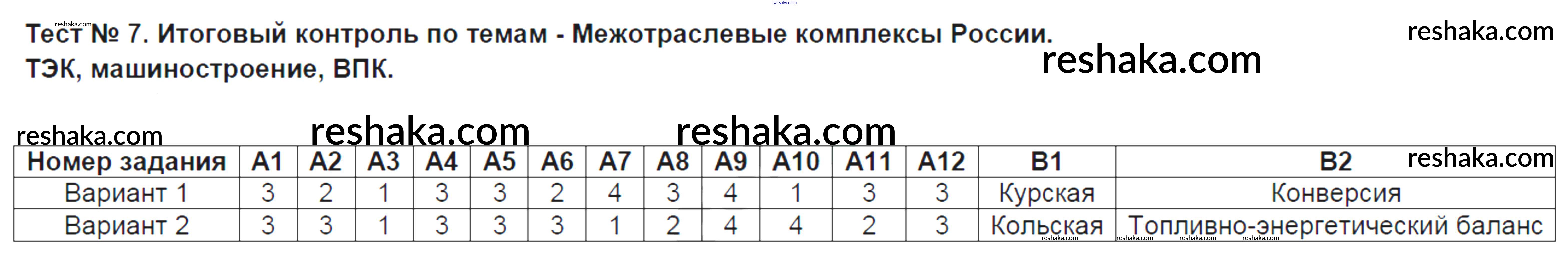Решака - онлайн ответы География Жижина за 9 класс Контрольно-измерительные материалы (КИМ) ФГОС 2017 - Тест №7. Итоговый контроль по темам - Межотраслевые комплексы России