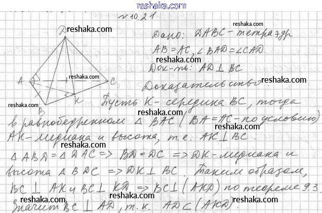 Решака - онлайн ответы Геометрия Мерзляк, Номировский за 10 класс Учебник Углубленный уровень ФГОС 2021 - 10.21