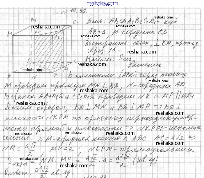 Решака - онлайн ответы Геометрия Мерзляк, Номировский за 10 класс Учебник Углубленный уровень ФГОС 2021 - 10.32
