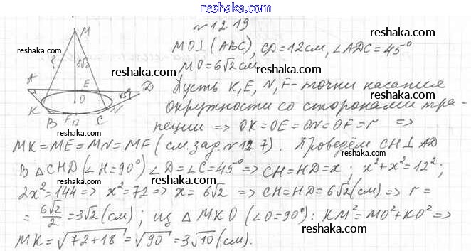 Решака - онлайн ответы Геометрия Мерзляк, Номировский за 10 класс Учебник Углубленный уровень ФГОС 2021 - 12.19