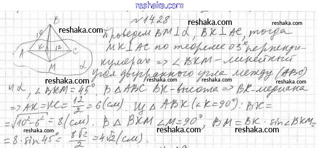 Решака - онлайн ответы Геометрия Мерзляк, Номировский за 10 класс Учебник Углубленный уровень ФГОС 2021 - 14.28