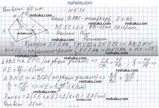 Представляем вам сборники по Геометрии, с готовыми ответами к Учебнику Мерзляк школьной программы для учеников десятый класса. Это не просто гдз с ответом, а с подсказками, как верно решить §5. Параллельность прямой и плоскости 5.31. Проверяй домашку с умом и получай высший балл!