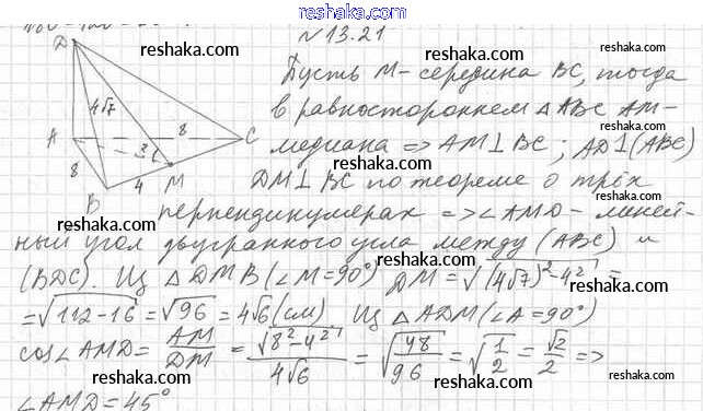 Решака - онлайн ответы Геометрия Мерзляк, Номировский за 10 класс Учебник Базовый уровень ФГОС 2017 - 13.21
