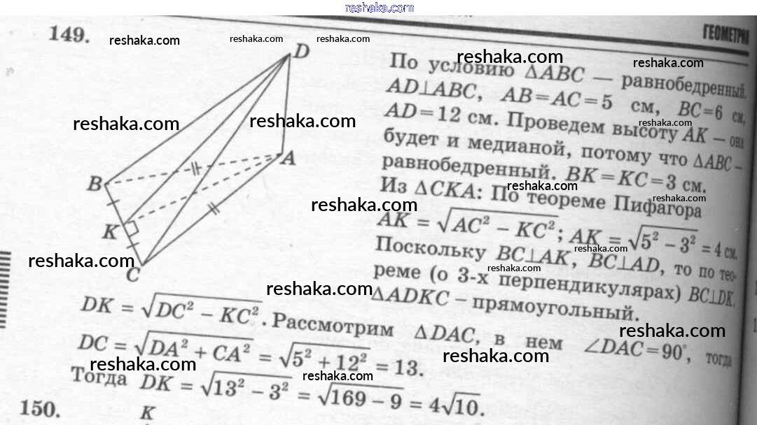 Решака - онлайн ответы Геометрия Атанасян, Бутузов за 10-11 класс Учебник Базовый и углубленный уровень ФГОС 2015 - 149