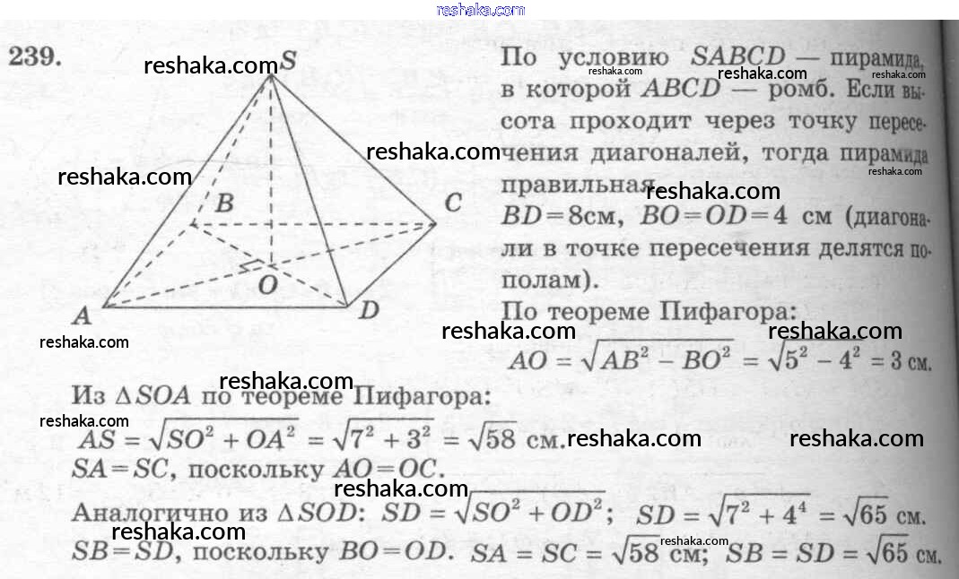 Решака - онлайн ответы Геометрия Атанасян, Бутузов за 10-11 класс Учебник Базовый и углубленный уровень ФГОС 2015 - 239