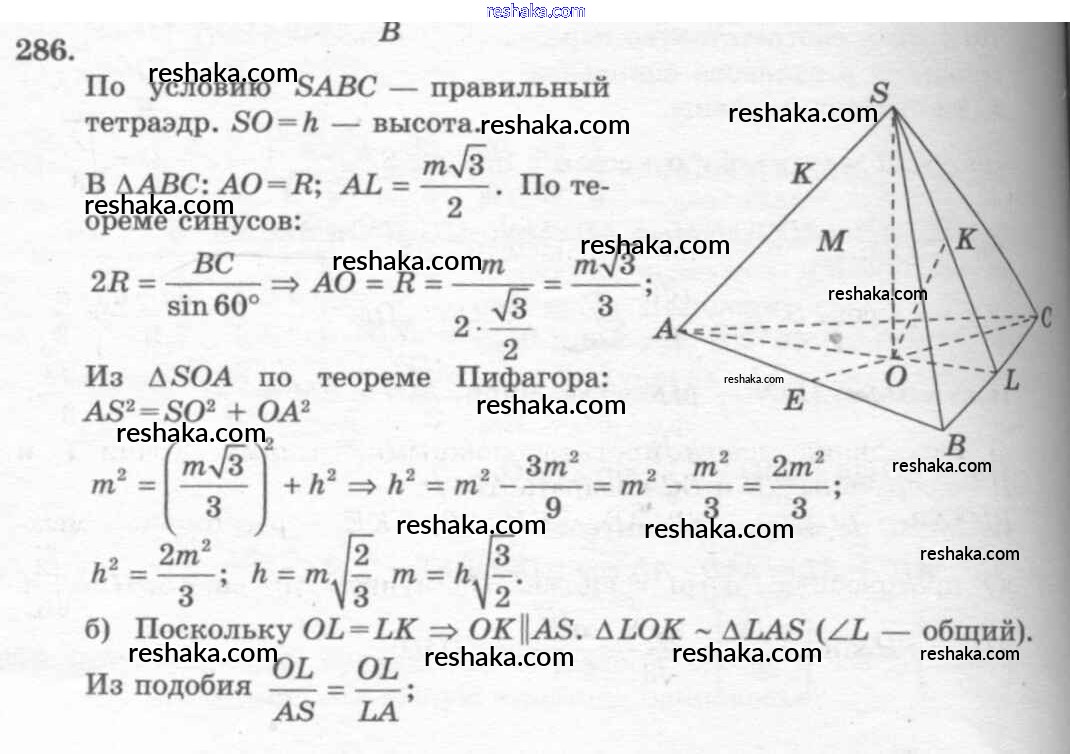 Решака - онлайн ответы Геометрия Атанасян, Бутузов за 10-11 класс Учебник Базовый и углубленный уровень ФГОС 2015 - 286