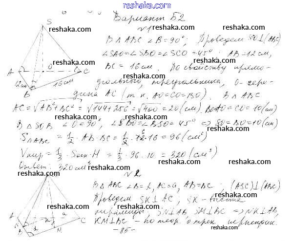Решака - онлайн ответы Геометрия Ершова, Голобородько за 11 класс Самостоятельные и контрольные работы ФГОС 2004 - Б2