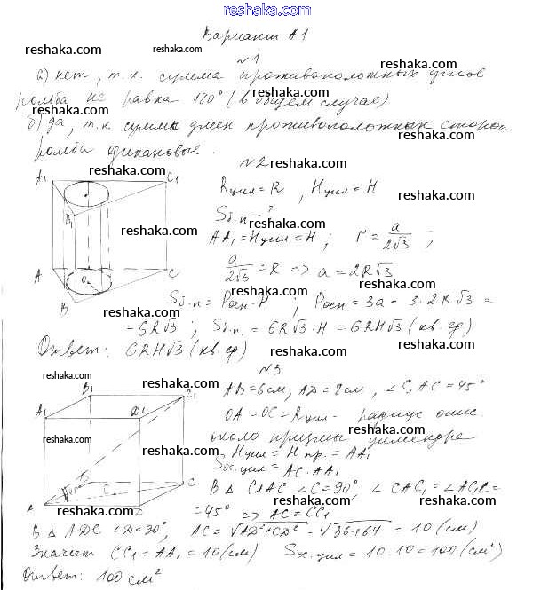 Решака - онлайн ответы Геометрия Ершова, Голобородько за 11 класс Самостоятельные и контрольные работы ФГОС 2004 - А1