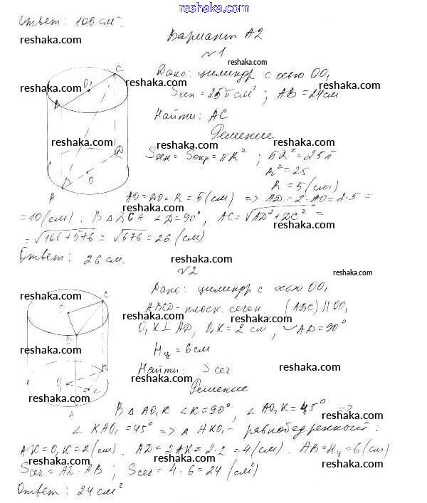 Решака - онлайн ответы Геометрия Ершова, Голобородько за 11 класс Самостоятельные и контрольные работы ФГОС 2004 - А2