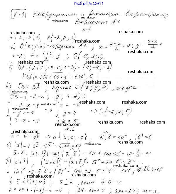 к учебнику Атанасяна 10-11 / контрольная работа / кр-1. вариант / А1