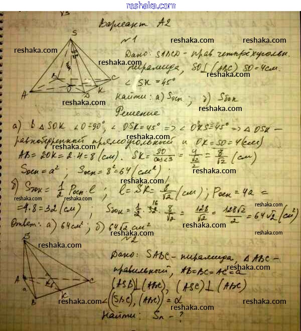 Решака - онлайн ответы Геометрия Ершова, Голобородько за 11 класс Самостоятельные и контрольные работы ФГОС 2004 - А2