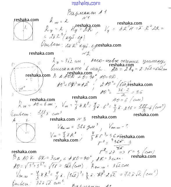 Решака - онлайн ответы Геометрия Ершова, Голобородько за 11 класс Самостоятельные и контрольные работы ФГОС 2004 - А1